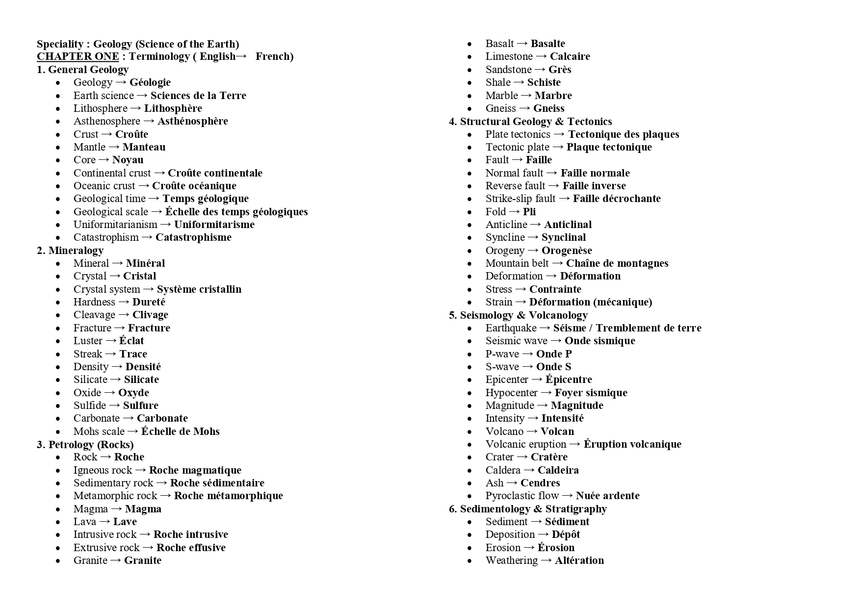 Introduce students to key geological terms in English and French.